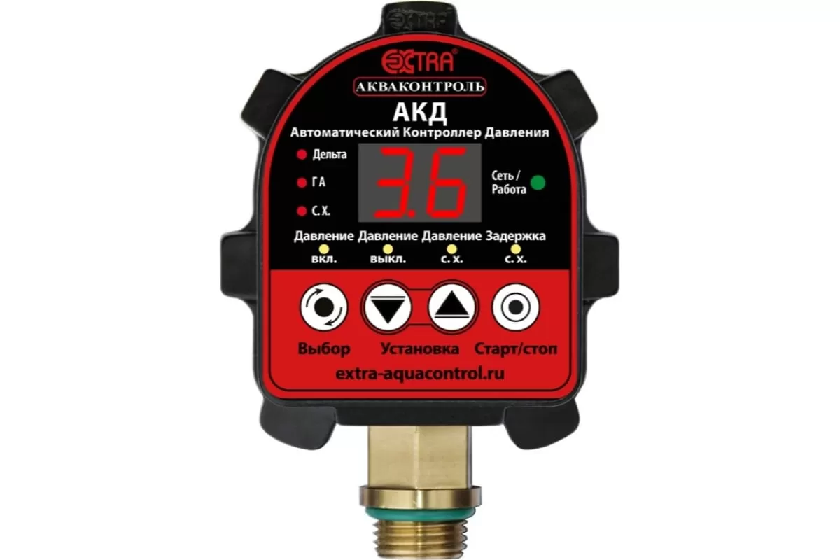 Модель автоматического контроллера давления воды EXTRA АКВАКОНТРОЛЬ АКД-10-1,5 представляет решение в области эффективного управления водоснабжением. Отличительной особенностью этой системы является её способность точно настраивать как параметры работы насоса, так и обеспечивать надежную защиту водопроводной системы.
