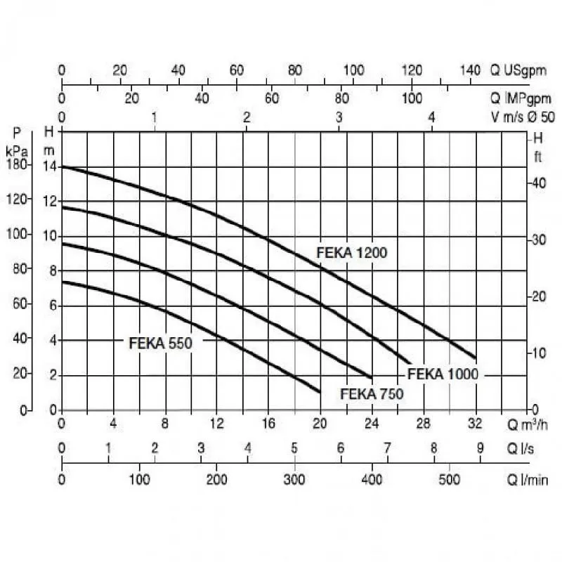 Графические характеристики фекального насоса DAB FEKA VS 1200 T-NA