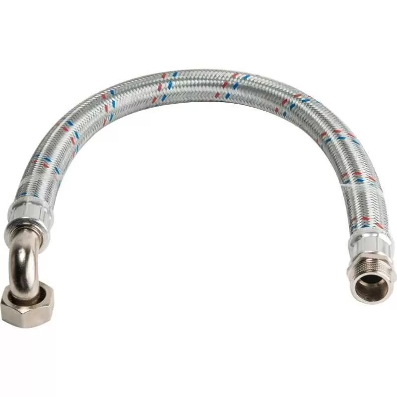Гибкая подводка IBO 30см – это резиновый шланг в металлической оплетке, оборудованный с обеих сторон коннекторами. Металлическая оплетка служит для внешней защиты шланга от механических повреждений и внутренней от нежелательных последствий гидравлических ударов, возникающих в водопроводной сети. Его применяют при монтаже смесителей, унитазов, душевых кабин и в других точках водозабора. В отличие от жестких приспособлений, подводку, оснащенную подвижной конструкцией, можно легко установить в труднодоступных местах с ограниченным пространством.