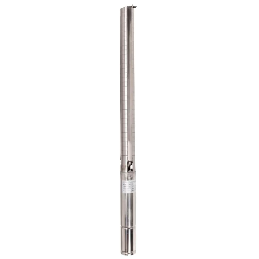 Погружной насос для скважины IBO 3ISP 3/32 диаметром 76 мм выполнен полностью из нержавеющей стали, предназначенные для установки в скважинах диаметром не менее 90 мм. Максимальное содержание песка в воде – до 0,3%. Насос IBO 3ISP 3/32 является одним из самых прочных в отношении конструкции насосом для глубоких скважин благодаря используемым материалам. Заборная часть и напорный патрубок, корпус, вал и роторы 100% изготовлены из нержавеющей стали. Насос поставляются в комплекте с 3–дюймовыми масляными двигателями. Скважинный насос обладает сбалансированными напорно-расходными характеристиками. Максимальный напор насоса составляет 105 м, максимальная производительность равна 3.9 м³/час, при этом мощность электродвигателя 1100 Вт. Насосы ИБО серии 3ISP являются первыми насосами на Белорусском рынке, полностью изготовленными из нержавеющей стали диаметром 76мм. Насос комплектуется кабелем 1 м, предназначенный для погружением в воду. По желанию заказчика возможно удлинение кабеля на любую длину.
