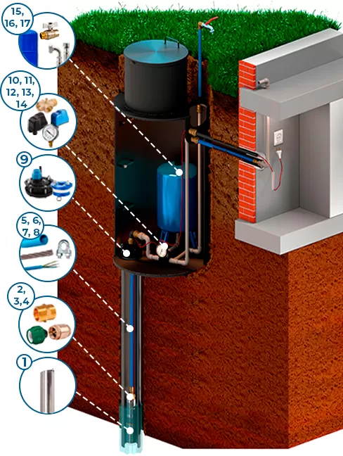 Водоснабжение односемейных домов и дачных домиков.Установка скважинного насоса IBO 3ISP 3/32