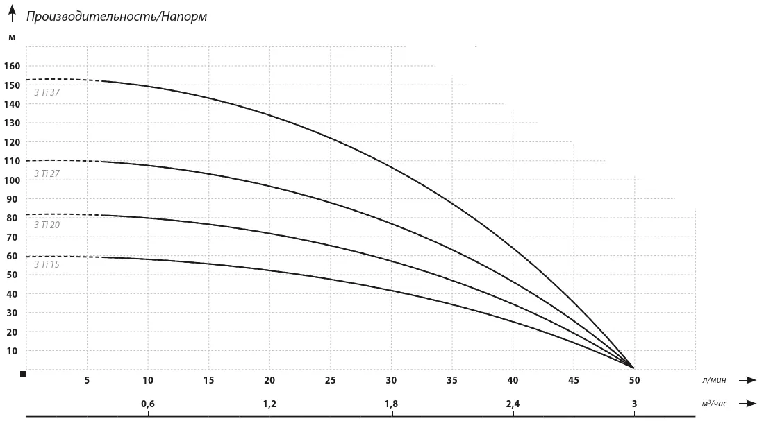 Графические характеристики насоса для скважины IBO 3Ti 15 кабель 20 метров