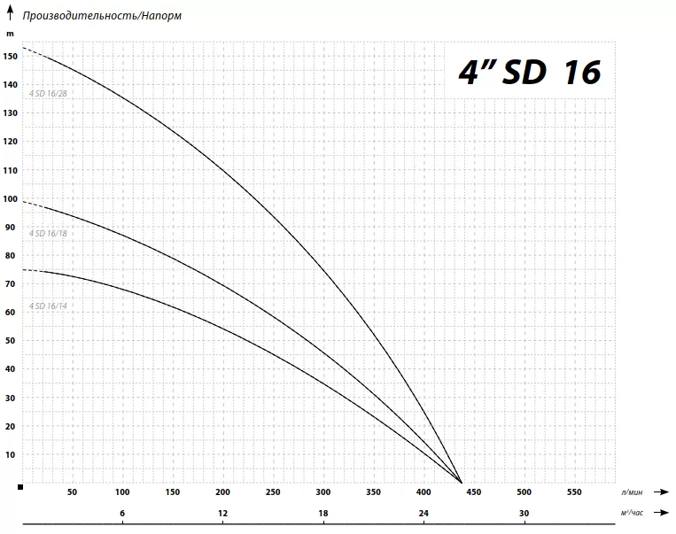 Трехфазный глубинный погружной насос IBO 4SD 16/14 (380В) диаметром 98 мм с повышенной устойчивостью к песку. Насос IBO 4SD 16/14 (380В) доступен к покупке с двигателями IBO и итальянскими двигателями IBO ITALY. В насосе IBO 4SD 16/14 (380В) используется технология «плавающих лопастных колес», а также для основных рабочих элементов насоса применяются износостойкие материалы: латунный нагнетательный патрубок, корпус, вал и сетка фильтра выполнены из нержавеющей стали AISI 304 / а также лопастные колеса выполнены из высококачественной пластмассы, Благодаря этому насос IBO 4SD 16/14 (380В) имеет повышенную стойкость к песку. Насос комплектуется кабелем 1 м, по желанию его можно нарастить до нужного размера. Скважинный насос IBO 4SD 16/14 (380В) имеет отличные характеристики. Напор насоса в максимальной точке составляет 75 м, а производительность достигает максимального показателя в 24.48 м³/час. Мощность двигателя составляет 4000 Вт, то вполне неплохо для насоса с такими напорно-расходными характеристиками. Насосы серии SD марки ИБО были первыми насосами на рынке, названными «анти–песочными». Они по прежнему являются одними из немногих скважинных насосов на рынке, которые имеют конструкции с такой высокой устойчивостью к песку. Максимальное содержание песка в воде – до 5%. Насос IBO 4SD 16/14 (380В) можно применять как аналог насосов ЭЦВ.