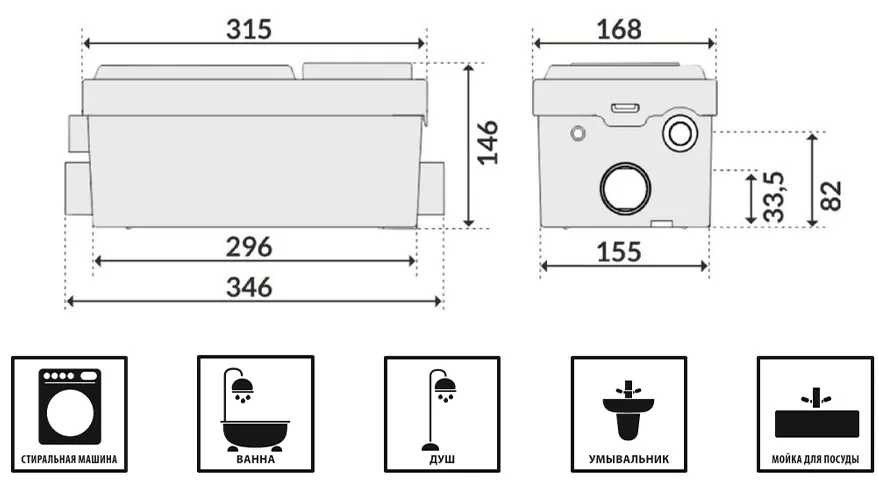 Санитарная насосная станция для ванной и кухни.