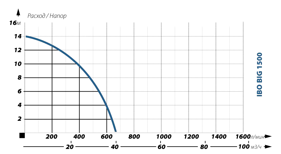 Графические характеристики фекального насоса IBO BIG 1500