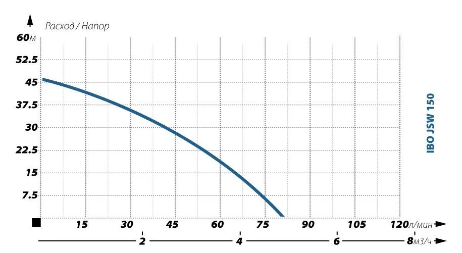 Графические характеристики поверхностного насоса IBO JSW 150