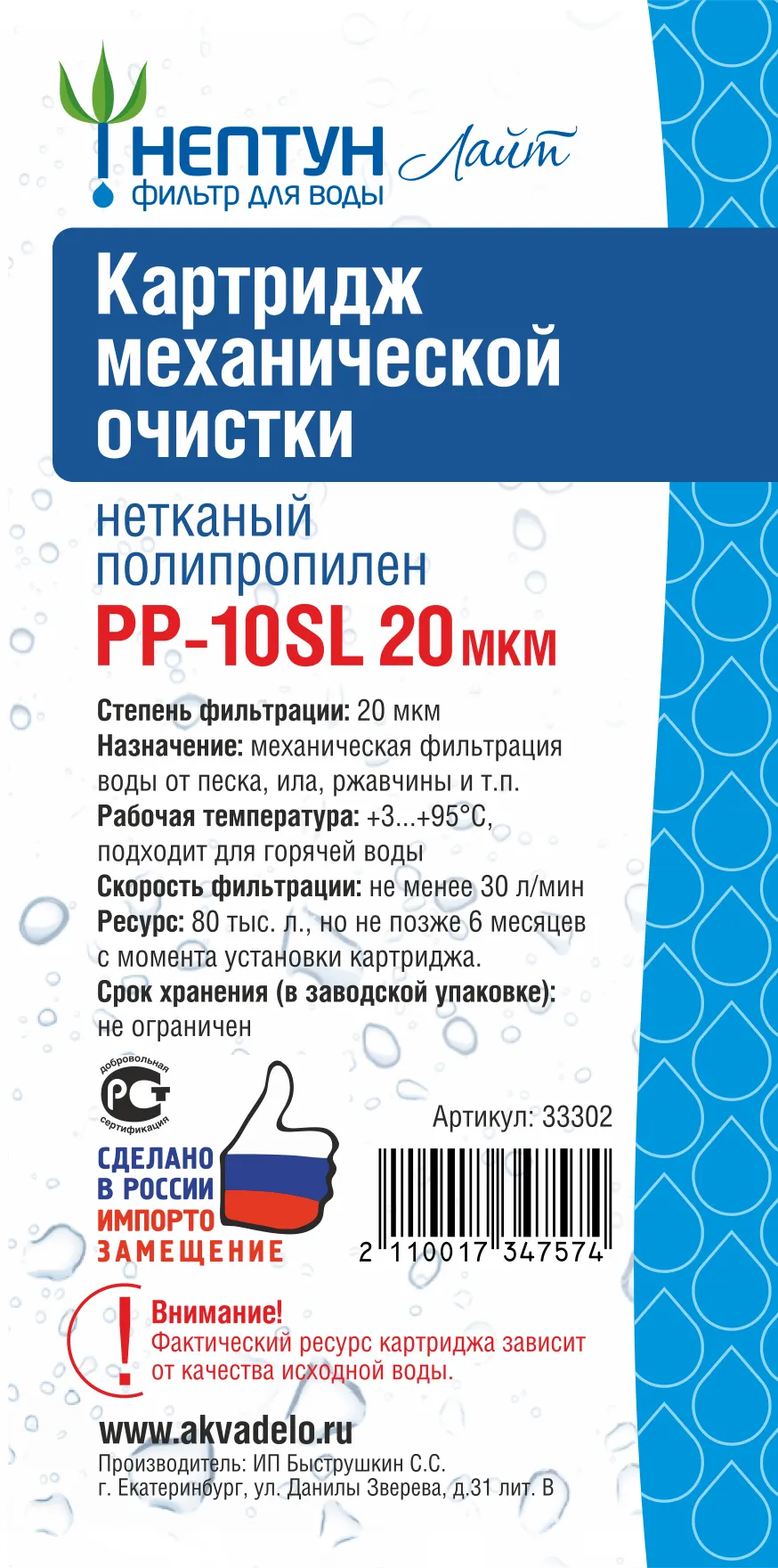 Изготовлен из 100% первичного полипропилена: Производство из российского сырья без использования вторичных материалов и связующих добавок гарантирует безопасность и высокое качество очистки.