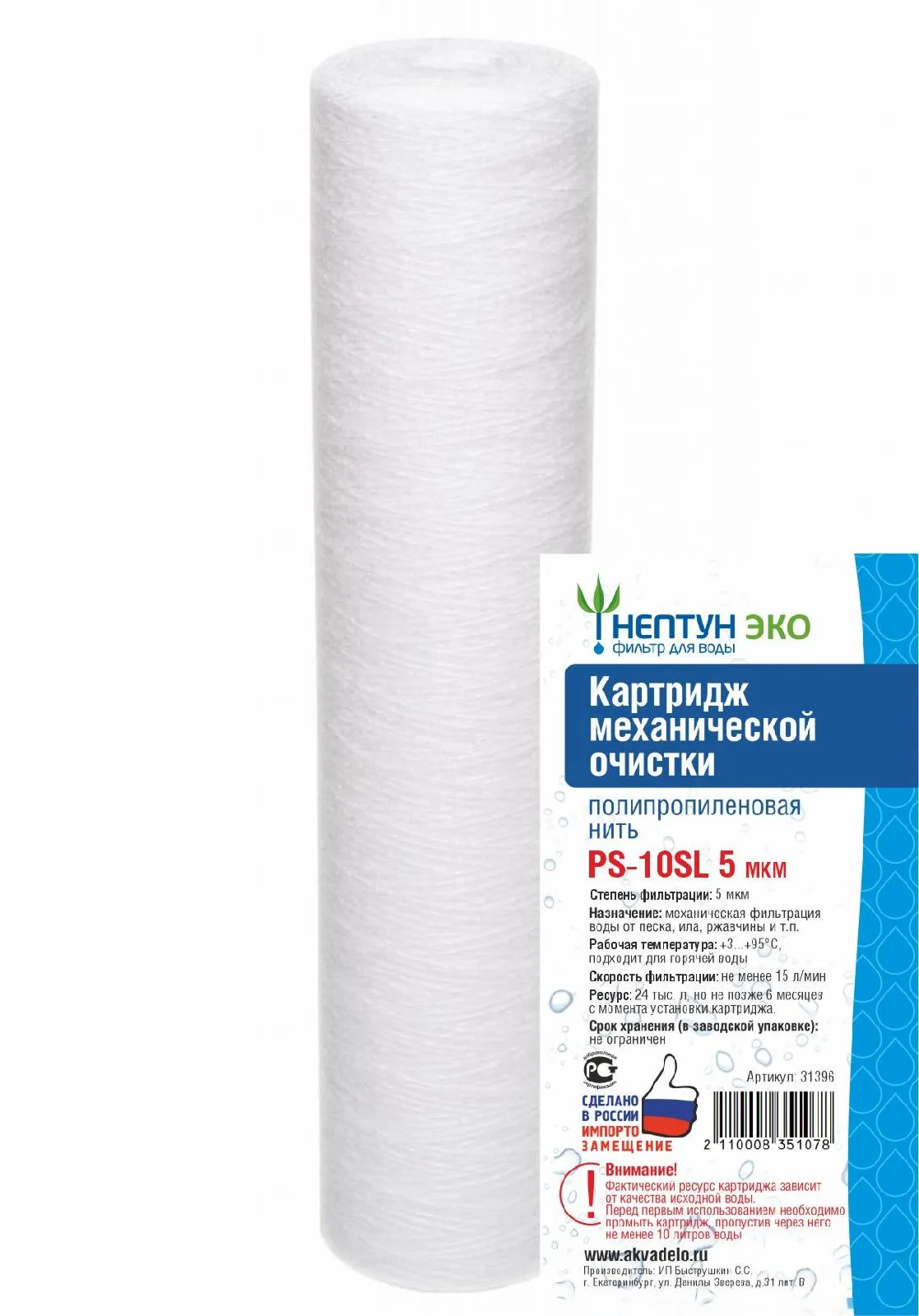 Картридж из полипропиленовой нити Нептун ЭКО PS-10SL 5 мкм