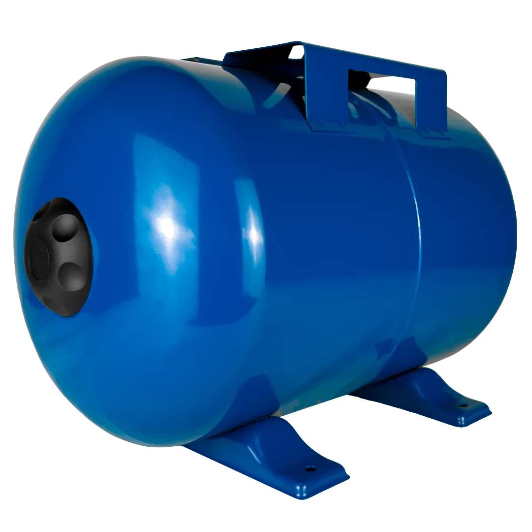 Гидроаккумулятор для воды MAXPUMP H-100 горизонтального исполнения предназначен для систем холодного водоснабжения. Гидроаккумулятор служит для накапливания запаса воды объемом до 100 литров, снижения верятности возникновения гидравлических ударов в системе, а также сокращения количества пусков насоса, тем самым продлевая срок службы насоса. Конструкция гидроаккумулятора представляет собой стальной корпус, окрашенный в синий цвет, со сменной мембранной, изготовленной из высококачественного материала EPDM, опорными ножками у основания бака, воздушным клапаном и площадкой для установки насоса. Горизонтальные гидроаккумуляторы, благодаря установочной площадке, расположенной на поверхности бака, могут использоваться с поверхностными насосами.