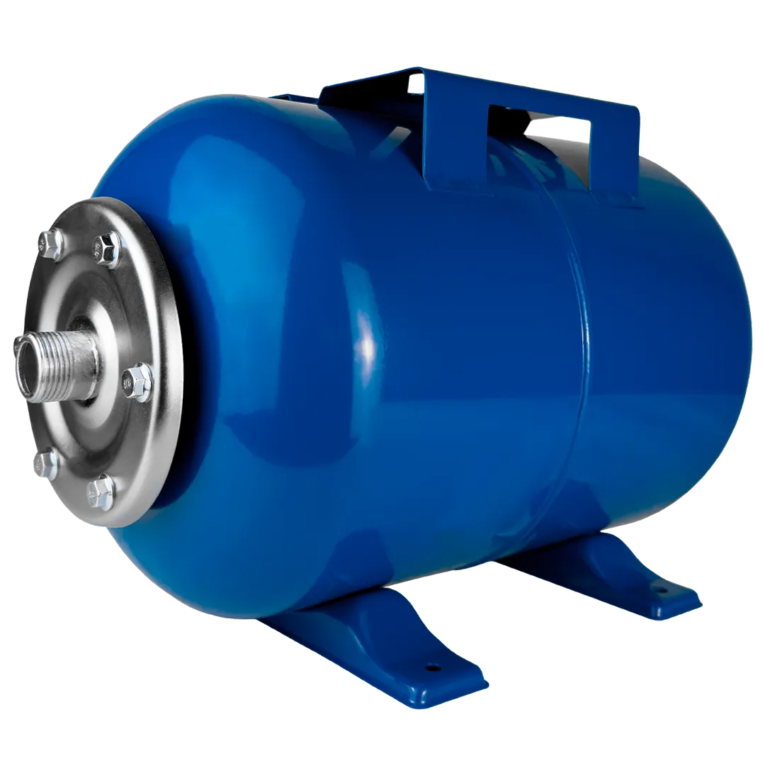 Гидроаккумулятор для воды MAXPUMP H-80 горизонтального исполнения предназначен для систем холодного водоснабжения. Гидроаккумулятор служит для накапливания запаса воды объемом до 80 литров, снижения вероятности возникновения гидравлических ударов в системе, а также сокращения количества пусков насоса, тем самым продлевая срок службы насоса. Конструкция гидроаккумулятора представляет собой стальной корпус, окрашенный в синий цвет, со сменной мембранной, изготовленной из высококачественного материала EPDM, опорными ножками у основания бака, воздушным клапаном и площадкой для установки насоса. Горизонтальные гидроаккумуляторы, благодаря установочной площадке, расположенной на поверхности бака, могут использоваться с поверхностными насосами.
