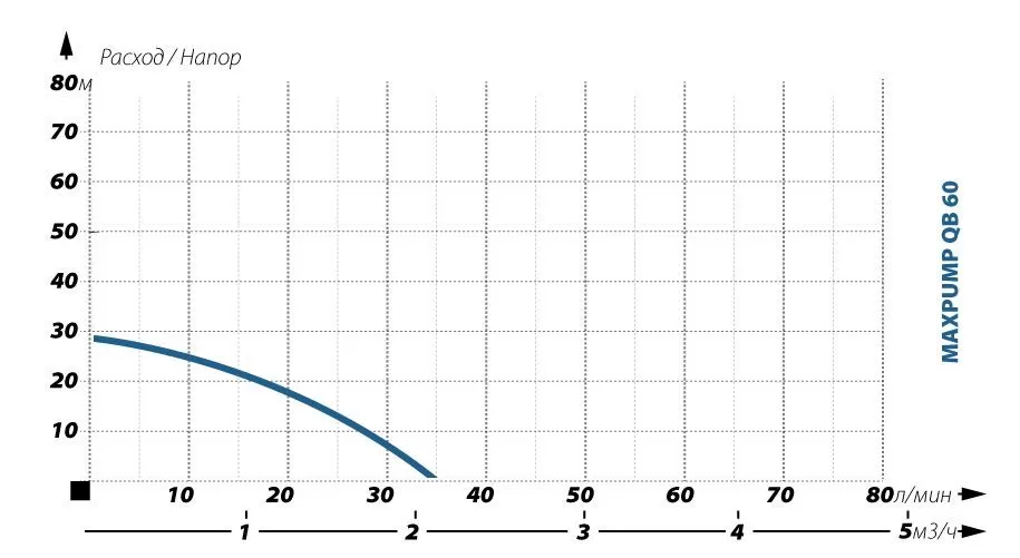 Поверхностный насос MAXPUMP QB 60 применяется для водоснабжения индивидуальных жилых домов и мелких производств, полива огорода, наполнения и опорожнения ёмкостей, обеспечения работы стиральных машин-автоматов, электробойлеров типа “ARISTON”, двухконтурных газовых котлов и водонагревательных колонок типа «BOSCH”. Водозабор осуществляется из скважин, колодцев, природных водоемов. Максимальное расстояние от места установки насоса до поверхности воды в скважине или колодце, позволяющее производить самовсасывание, составляет не более 5 м. Общая глубина скважины или колодца при этом не ограничена. На максимальную глубину самовсасывания воды имеет влияние горизонтальное расстояние от колодца или скважины до насоса. Для расчётов также необходимо учитывать, что для всасывающей трубы диаметром 1 ¼” каждому горизонтальному отрезку трубы длиной 10 м соответствует 1 м глубины всасывания. Для всасывающей трубы диаметром 1” следует принять, что 10 м в горизонтальном положении соответствует 1,5 м глубины всасывания.