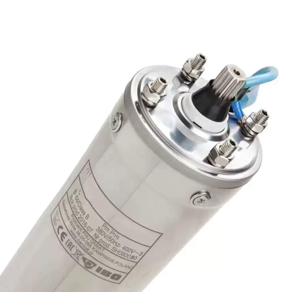 Трехфазный глубинный погружной насос IBO 4SD 4/18 (380В) диаметром 98 мм с повышенной устойчивостью к песку. Насос IBO 4SD 4/18 (380В) доступен к покупке с двигателями IBO и итальянскими двигателями IBO ITALY. В насосе IBO 4SD 4/18 (380В) используется технология «плавающих лопастных колес», а также для основных рабочих элементов насоса применяются износостойкие материалы: латунный нагнетательный патрубок, корпус, вал и сетка фильтра выполнены из нержавеющей стали AISI 304 / а также лопастные колеса выполнены из высококачественной пластмассы, Благодаря этому насос IBO 4SD 4/18 (380В) имеет повышенную стойкость к песку. Насос комплектуется кабелем 1 м, по желанию его можно нарастить до нужного размера. Скважинный насос IBO 4SD 4/18 (380В) имеет отличные характеристики. Напор насоса в максимальной точке составляет 131 м, а производительность достигает максимального показателя в 7.2 м³/час. Мощность двигателя составляет 1500 Вт, то вполне неплохо для насоса с такими напорно-расходными характеристиками. Насосы серии SD марки ИБО были первыми насосами на рынке, названными «анти–песочными». Они по прежнему являются одними из немногих скважинных насосов на рынке, которые имеют конструкции с такой высокой устойчивостью к песку. Максимальное содержание песка в воде – до 5%. Насос IBO 4SD 4/18 (380В) можно применять как аналог насосов ЭЦВ.