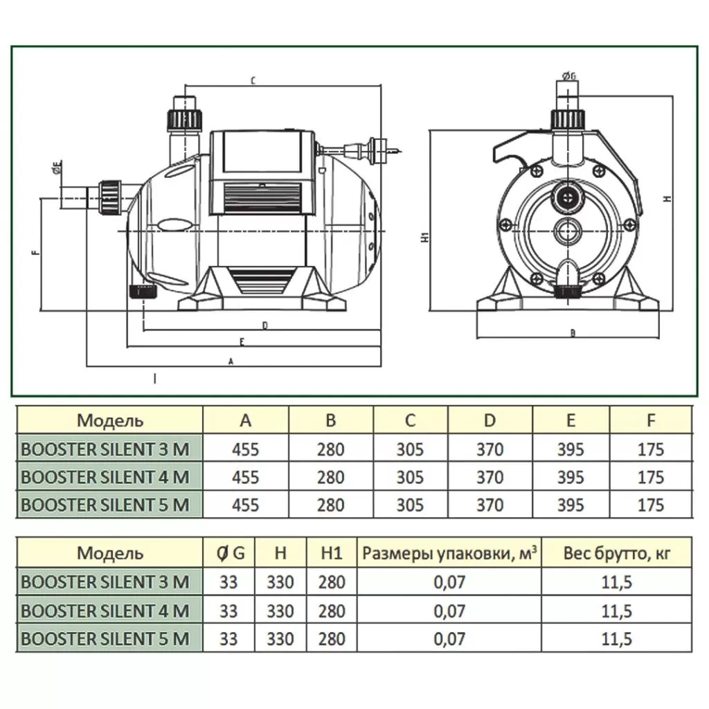 Насосная станция DAB Booster Silent 5 M может быть использована для поднятия воды из скважин и колодцев с целью водоснабжения дома и/или полива. Также Booster Silent может использоваться для подачи воды из резервуаров, рек и озер для различных хозяйственных нужд. В комплектацию насосной станции Booster Silent входят: насос с водяным охлаждением, система управления, гидравлический мембранный бак малого объема и штуцеры-переходники для подключения.