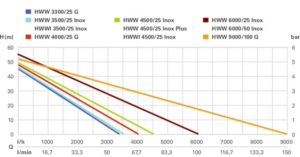 Графические характеристики насосной станции Metabo HWW 3500/25 Inox