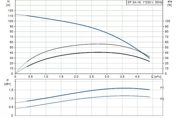 Насос Grundfos SP 3A-18 создан с применением новейших гидравлических технологий. Grundfos SP 3A-18 созданные специально для того, чтобы обеспечивать максимальную эффективность в периоды высокой нагрузки, насос имеет низкую стоимость и высокую надёжность эксплуатации вне зависимости от вида назначения. Grundfos SP 3A-18 обеспечивает высокую эффективность, высокое сопротивление абразивному износу (песку и иным абразивам), защиту от перегрева двигателя и простоту технического обслуживания. Также доступна готовая к применению система контроля и управления, предназначенная для постоянной оптимизации работы насосной системы. Максимальная производительность насоса 4.3 м3/час, максимальный напор 100 м при мощности электродвигателя 1100 Вт. Насос работает от сети 220 в. Гарантийный срок на насос Grundfos SP 3A-18 составляет 2 года.