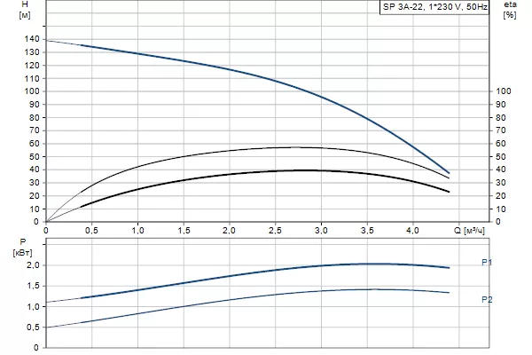 Графические характеристики Grundfos SP 3A-22