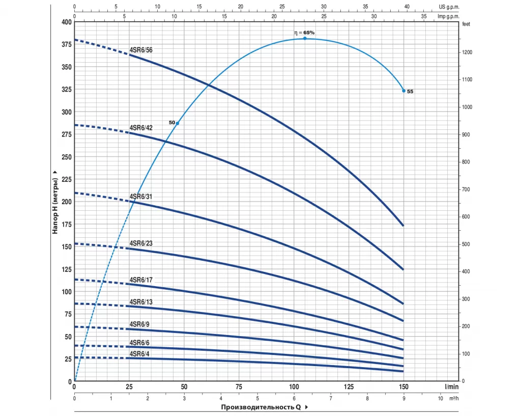 Глубинный насос Pedrollo 4SR6/17-P, отличается объективной ценой и надежной работой всех исполнительных механизмов. Насос Pedrollo 4SR6/17-P достаточно простой в эксплуатации и обслуживании, поэтому отлично подходит как для домашнего, так и промышленного применения.В основе работы Pedrollo 4SR6/17-P лежит конструктивно простой, но функционально успешный многоступенчатый центробежный принцип. Электрический двигатель подключается к агрегату через суппорт, в соответствии с нормативами международного стандарта NEMA. Мощность электродвигателя насоса составляет 2200 Вт . И при таких показателях мощности насос обладает максимальным напором в 114 метров и максимальной производительностью 9 м3/час. Функционирование Pedrollo 4SR6/17-P идентично большинству устройств, основанных на центробежных механизмах подачи воды. Жидкость втягивается в корпус устройства благодаря центробежной силе, создаваемой рабочими колесами, которые также проталкивают воду через все тело насоса "диаметр насоса 4"", а затем в нагнетающий патрубок "диаметр патрубка 2"", через который вода и попадает к конечному потребителю. Главной особенностью насоса Pedrollo 4SR6/17-P является малый диаметр корпуса агрегата, а также то, что перекачиваемая вода не касается стенок двигателя. Между жидкостью и корпусом движущей установки располагается прослойка из технологического масла, которая и предотвращает попадание мелких частиц непосредственно в исполнительный механизм. В то время как охлаждение электропривода происходит за счет верхнего способа забора воды, т.е. перекачиваемая жидкость находится всегда выше уровня расположения двигателя. Насос питается от сети в 380 в и комплектуется кабелем 1.5 метров.