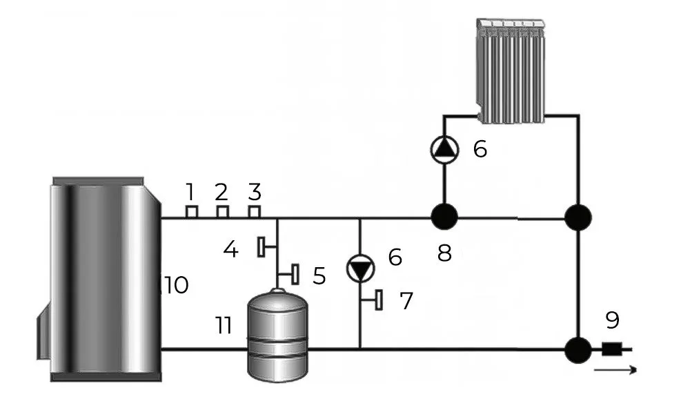 Рекомендуемая схема установки расширительного бака для отопления ТЕПЛОКС РБ-12 Л