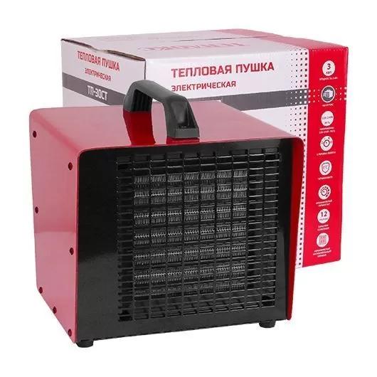 Тепловая пушка промышленная керамическая ТЕПЛОКС ТП-30СТ предназначена для нагрева воздуха в помещениях и автоматического поддерживания заданной температуры воздуха. Тепловая пушка ТЕПЛОКС серии ТП состоит из стального корпуса покрытого жаропрочной эмалью, нагревательных элементов с керамическими вставками и вентилятора.